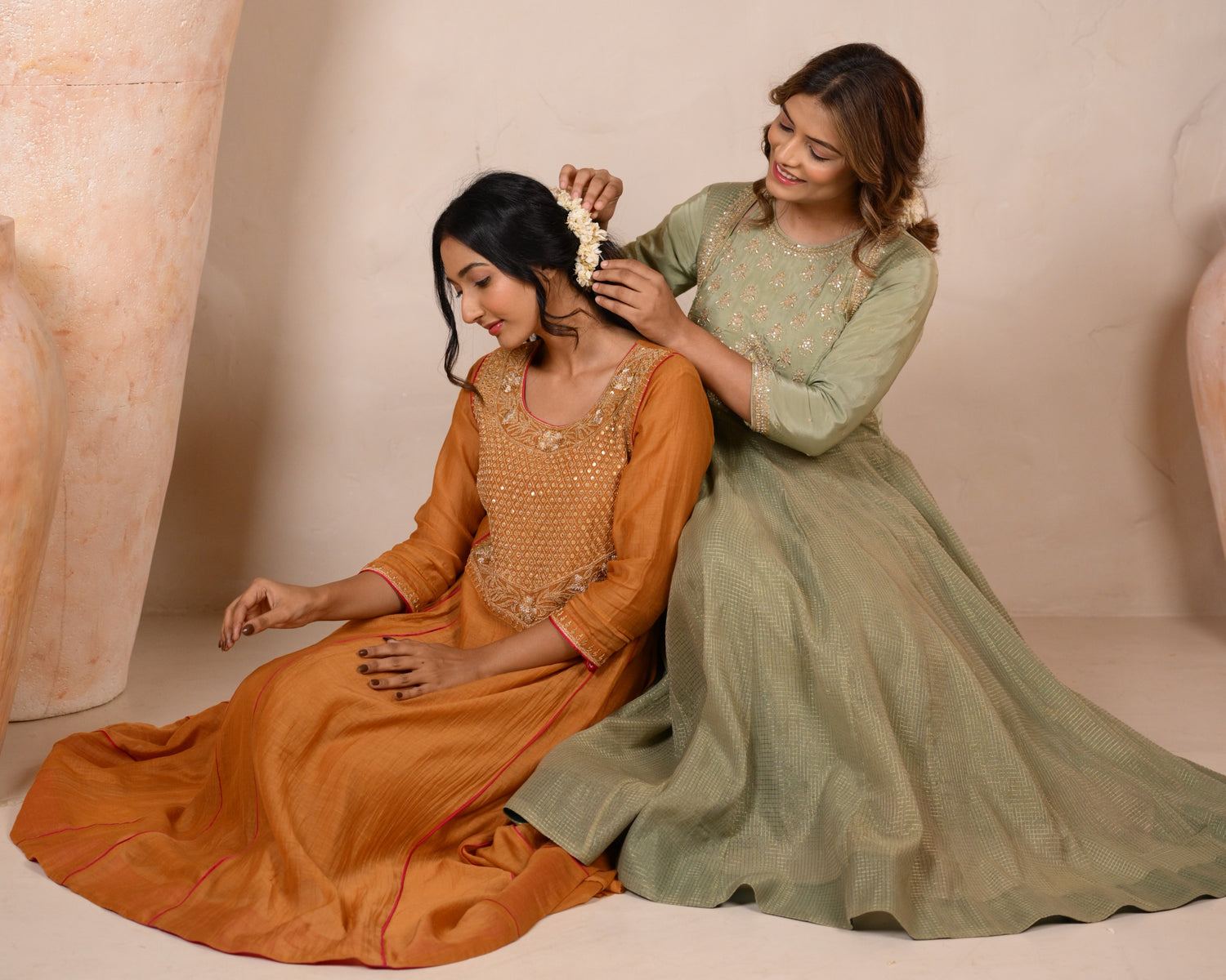 Light weight chanderi, cotton and organza, detailed with delicate block prints and embroideries — all come together to bring joy to warmer days.