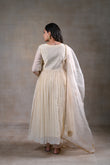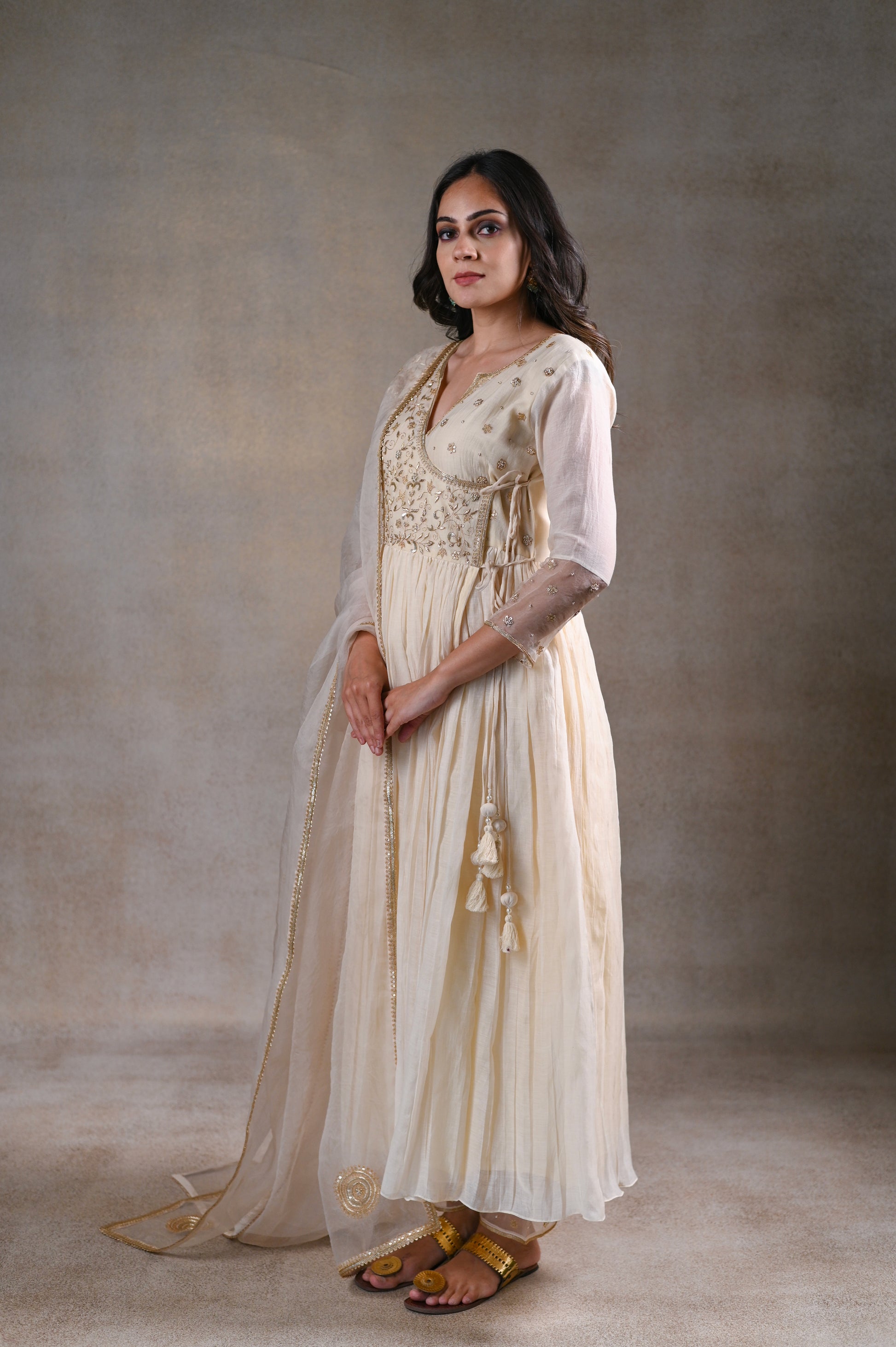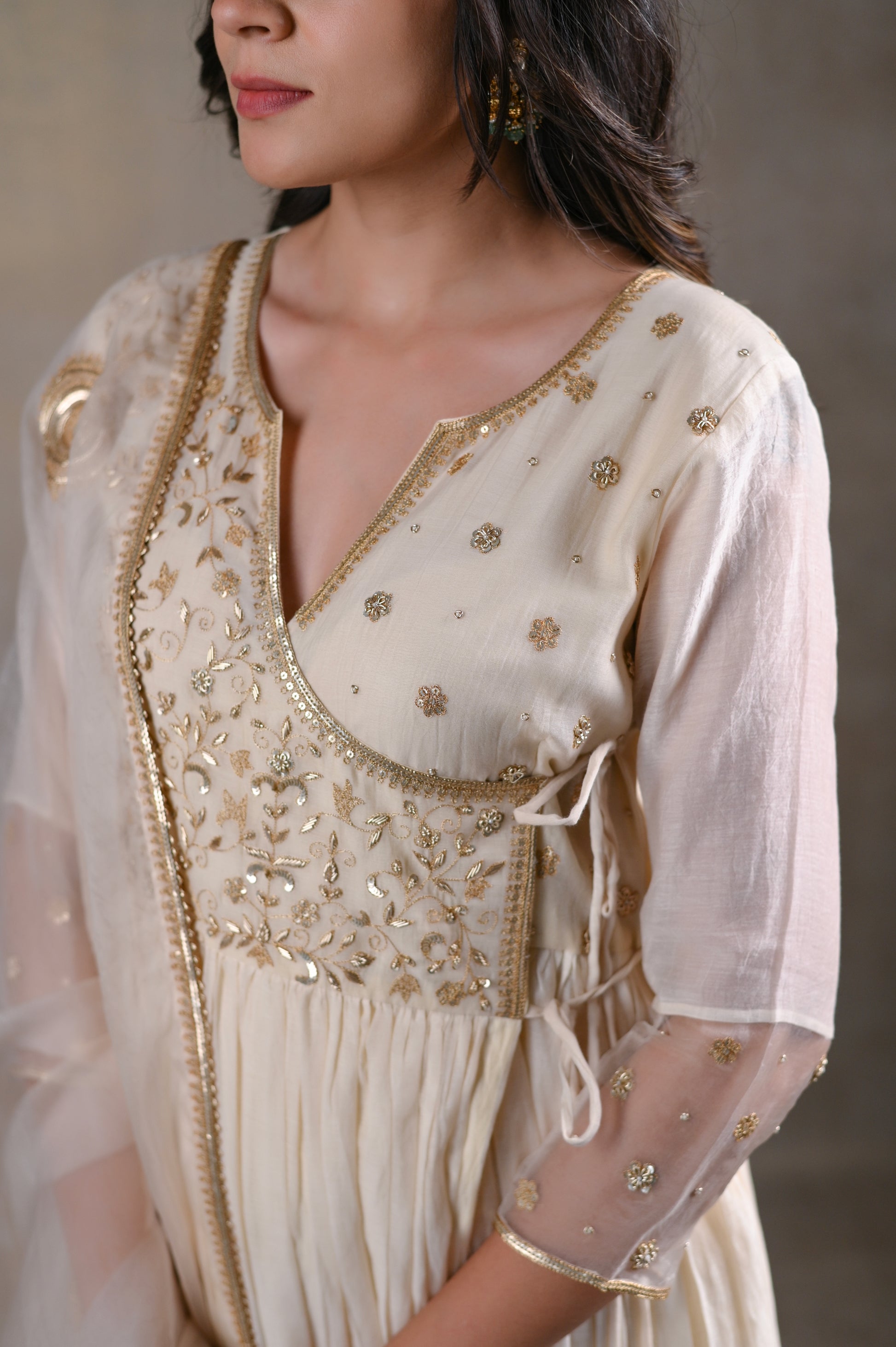 Handcrafted Chanderi Kurta set with aari, zardosi, tikki & moti work paired with Organza dupatta and silk pants