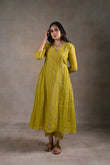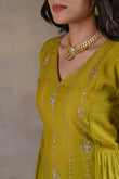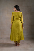 Handcrafted Chanderi Kurta set with aari, zardosi, tikki & moti work paired with detailed silk pants
