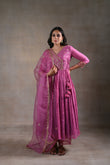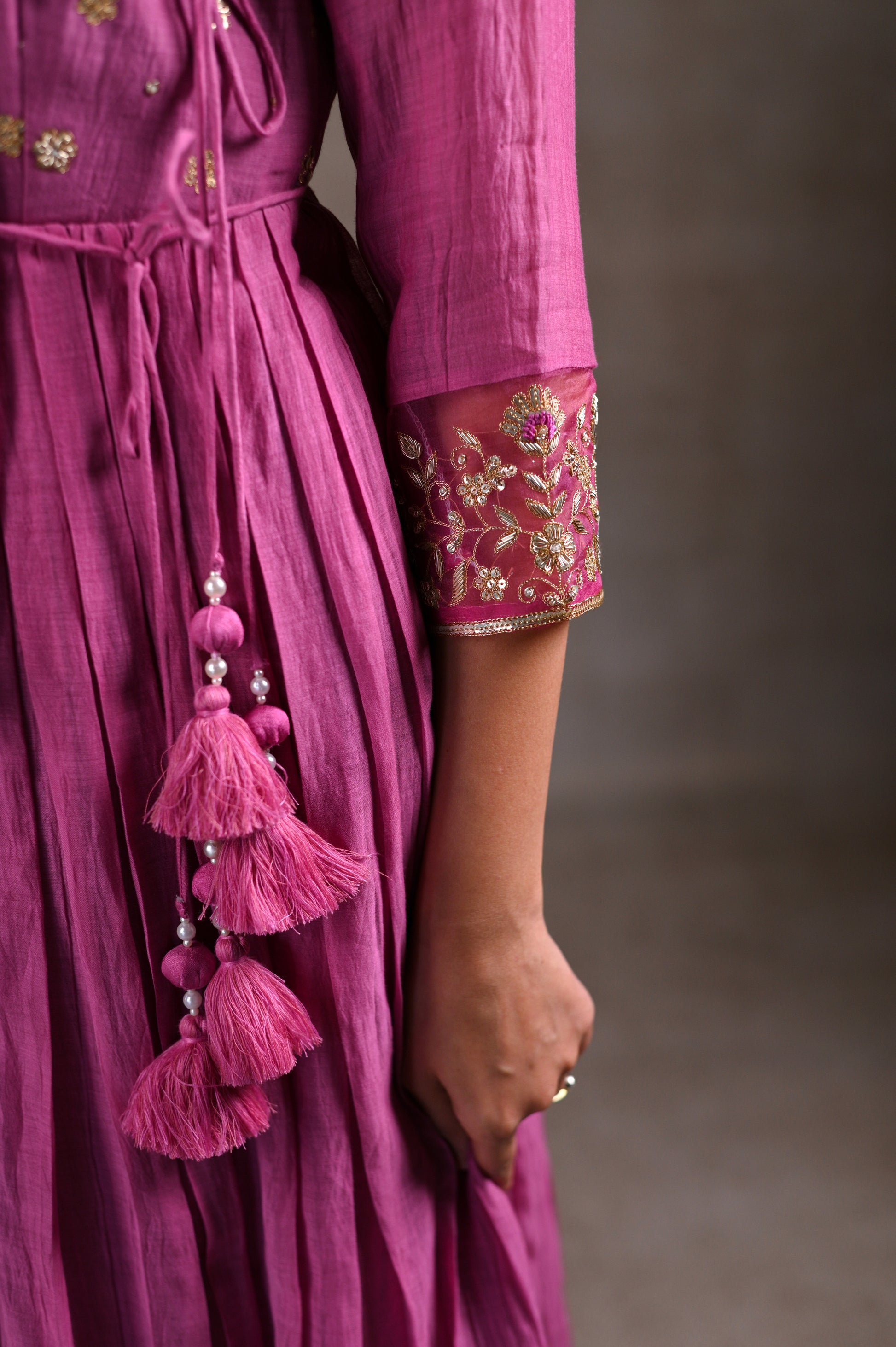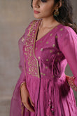 Handcrafted Chanderi Kurta set with aari, zardosi, tikki & moti work paired with Organza dupatta and silk pants